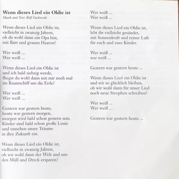 | 13 | Rolf Zuckowski, Andreas: Wenn Dieses Lied Ein Oldie Ist | 3:54 min | |