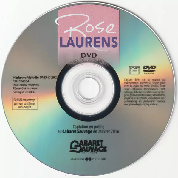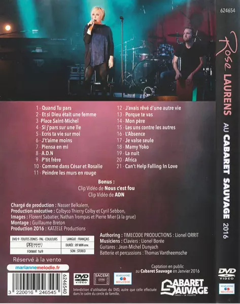 Rose Laurens: Rose Laurens Au Cabaret Sauvage 2016 A lemezen lévő változat DVD - standard kiadás. Ez a különleges kiadás - Franciaország a kiadó által Marianne Mélodie év 16. február 2024. Album műfajba sorolható Pop.