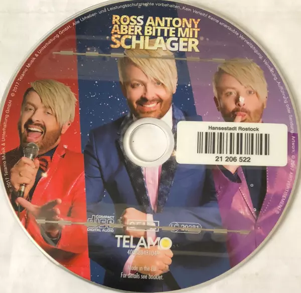 Ross Antony: Aber Bitte Mit Schlager A lemezen lévő változat CD - standard kiadás. Ez a különleges kiadás - Németország a kiadó által TELAMO év 8. szeptember 2017. Album műfajok között Pop és Sláger.