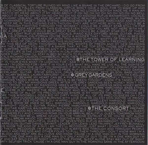 Arranged By [String Arrangements By] Pierre Marchand, Rufus Wainwright | Banjo, Guitar Yves Desrosiers | Bass Jeff Hill | Cello Carla Antoun, Christine Giguère | Drums Jim Keltner | French Horn Jean Paquin, Pierre Savoie | Oboe Normand Forget | Viola Greg Hay, Julie Dupras, Véronique Potvin, Wilma Hos | Violin Geneviève Beaudry, Jean-Marc Leblanc, Mélanie Bélair, Stéphanie Allard | Vocals, Piano Rufus Wainwright