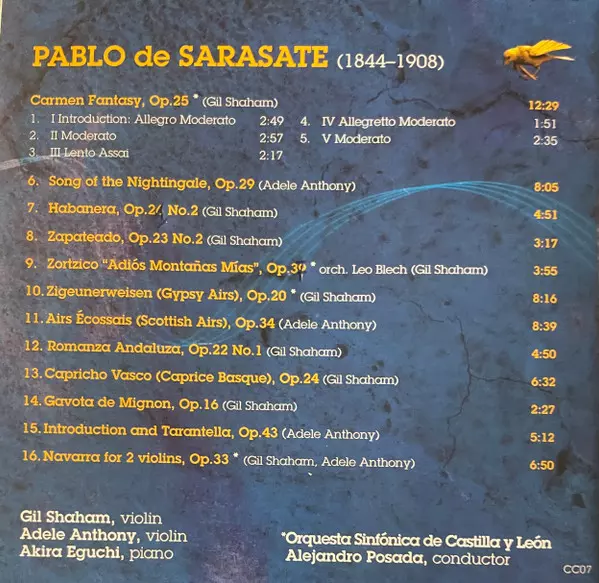 | Művész | Pablo De Sarasate | Gil Shaham | Adele Anthony |