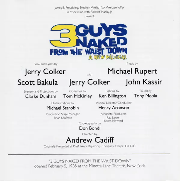 | Cím | 3 Guys Naked From The Waist Down - A New Musical -- Original Cast Recording |