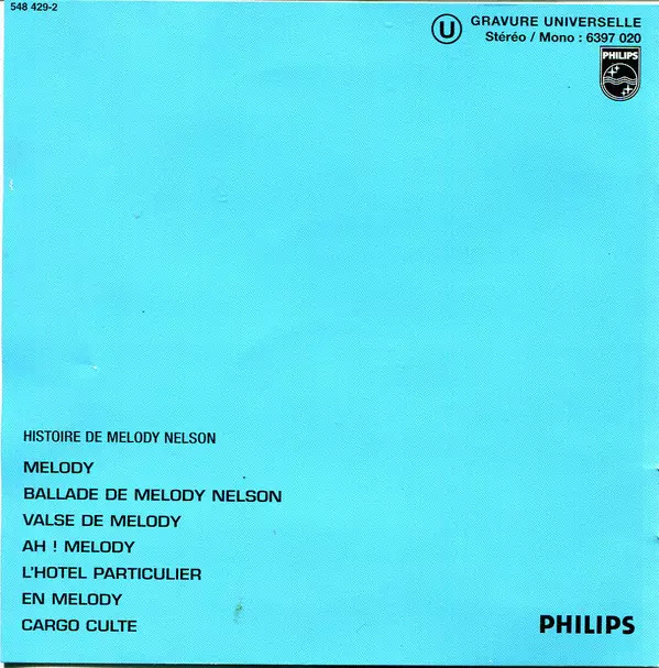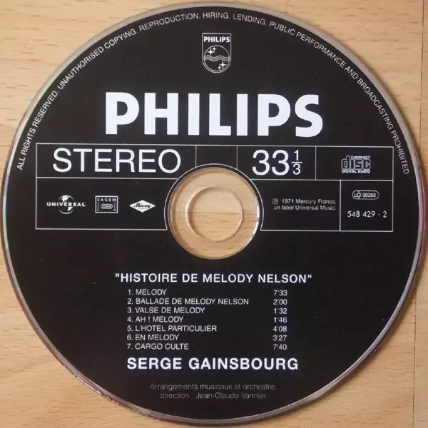Serge Gainsbourg: Histoire De Melody Nelson A lemezen lévő változat CD - felújított kiadás. Ez a különleges kiadás - Franciaország a kiadó által Philips a következőkkel együttműködve Mercury év 6. november 2001.
