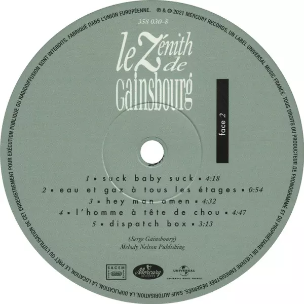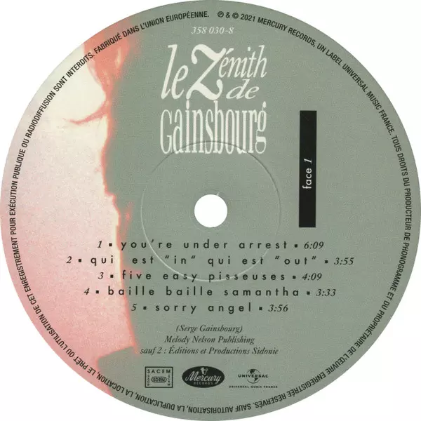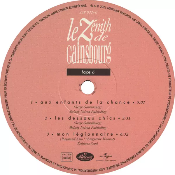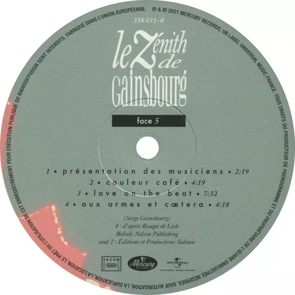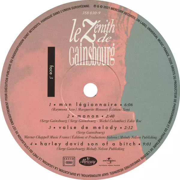 Serge Gainsbourg: Le Zénith De Gainsbourg A lemezen lévő változat bakelitlemez 3LP - standard kiadás. Ez a különleges kiadás - Franciaország a kiadó által Mercury a következőkkel együttműködve Universal Music France év 21. június 2021.