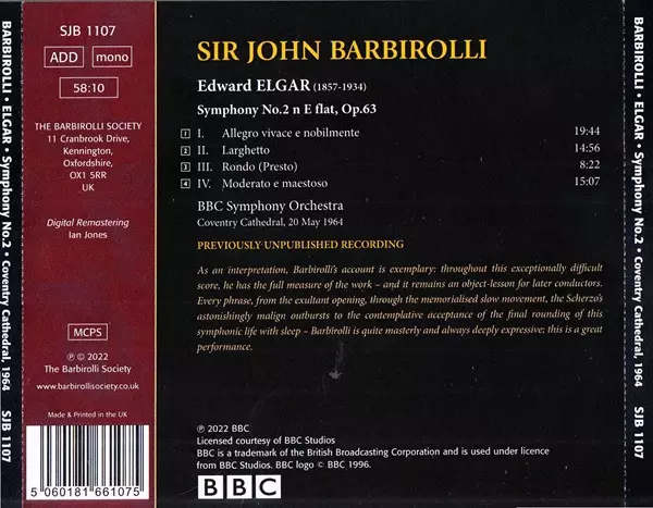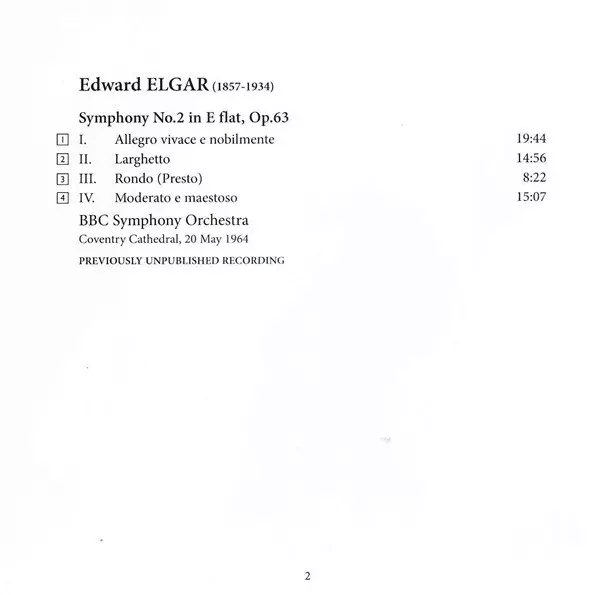 | Cím | Elgar: Symphony No.2 (Coventry Cathedral, 20 May 1964) |