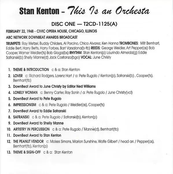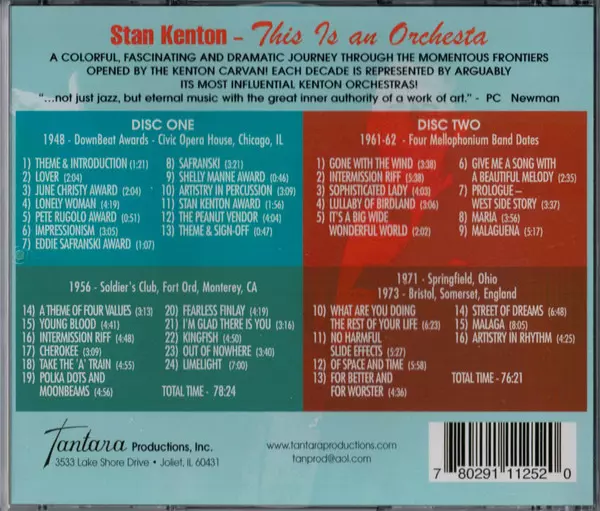 Stan Kenton: This Is An Orchestra! A lemezen lévő változat 2CD - felújított kiadás. Ez a különleges kiadás - USA a kiadó által Tantara (4) év 22. június 2010. Album műfajok között Jazz és Big Band.