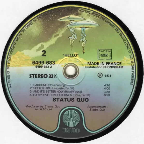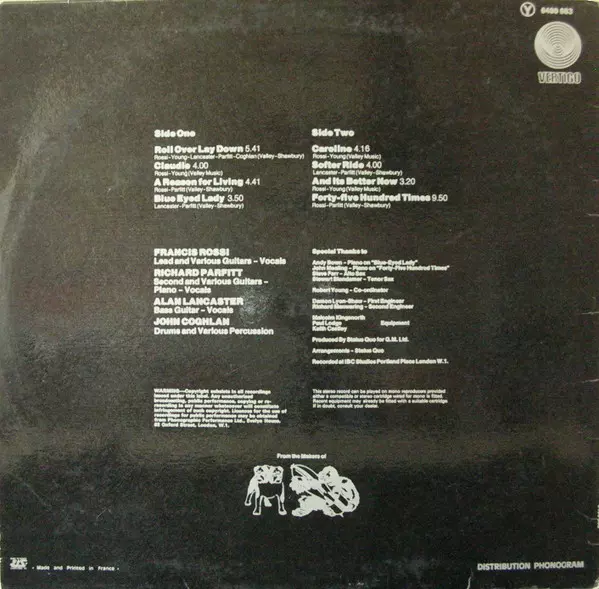 | További információk | 1973 Original French Pressing Vertigo Stereo |