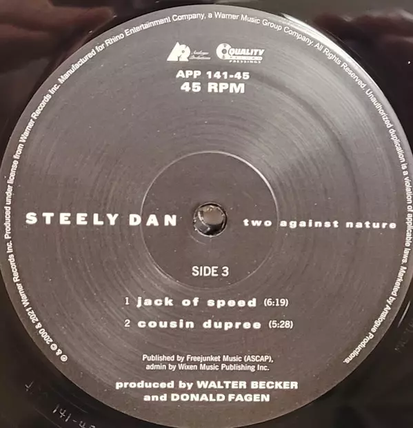 Steely Dan: Two Against Nature A lemezen lévő változat bakelitlemez 2LP - 45 RPM felújított kiadás. Ez a különleges kiadás - USA a kiadó által Analogue Productions év 28. július 2023. Album műfajok között Rock, Pop, Jazz, Pop Rock és Fusion. 180g Vinyl.