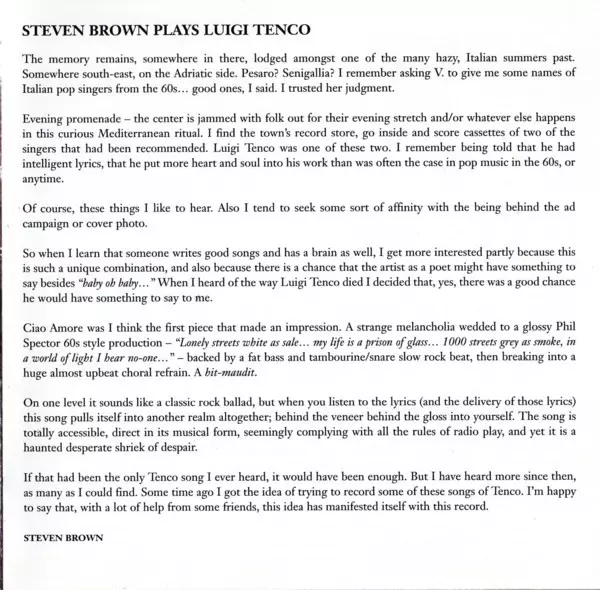 | Cím | Brown Plays Tenco - Le Canzoni Di Luigi Tenco (Studio & Live) |