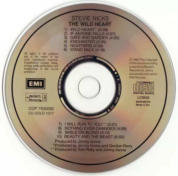 Stevie Nicks: The Wild Heart A lemezen lévő változat CD - standard kiadás. Ez a különleges kiadás - Európa a kiadó által Modern Records a következőkkel együttműködve EMI Gold év 23. február 2004. Album műfajok között Rock, Pop, Pop Rock és Soft Rock.