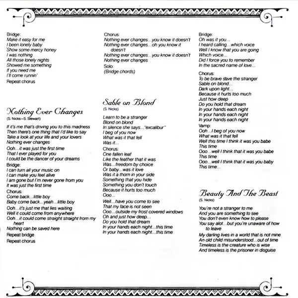 Bass Kenny Edwards | Drums Mick Fleetwood | Guitar Waddy Wachtel | Piano Roy Bittan | Synthesizer Sandy Stewart | Written-By Stevie Nicks