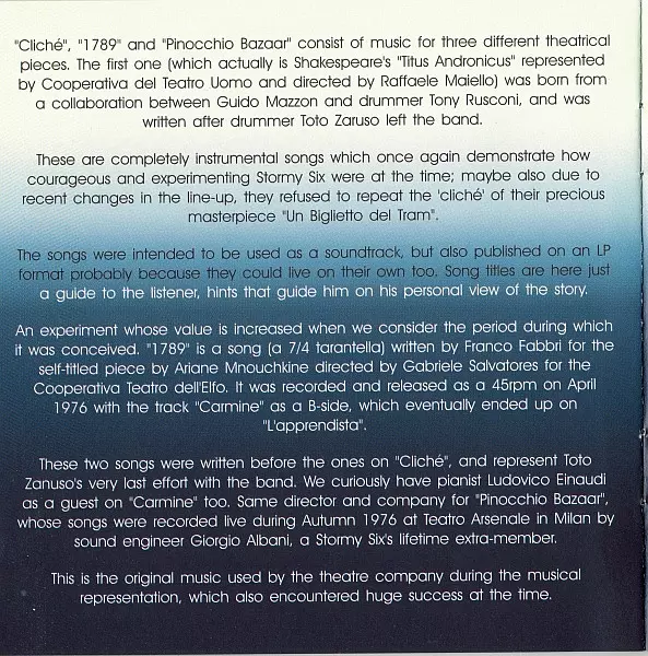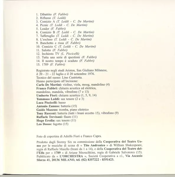 | Művész | Stormy Six | Guido Mazzon | Tony Rusconi |