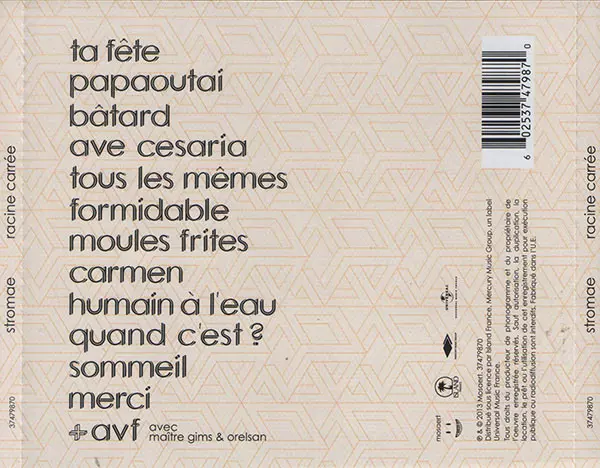 Racine Carrée is the second studio album by Belgian singer-songwriter Stromae , released on 17 September 2013 by Mercury Records. The album was preceded by the release of the singles "Tous les mêmes" and "Papaoutai". Racine Carrée debuted at number one on the Belgian album chart and was awarded a platinum record by the Belgian Entertainment Asso...