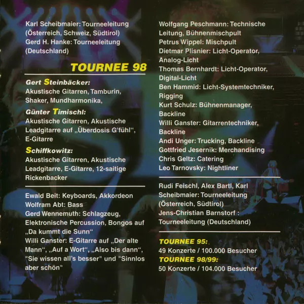 STS: Live A lemezen lévő változat 2CD - standard kiadás. Ez a különleges kiadás - Ausztria a kiadó által Amadeo a következőkkel együttműködve Universal év 5. június 2000. Album műfajok között Rock, Akusztikus zene és Folk Rock.