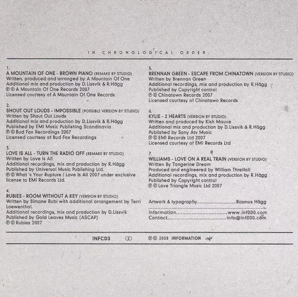 | Recorded By [Additional Recordings], Mixed By [Additional Mix], Producer [Additional Production] Rasmus Hägg | Written-By Love Is All | |||