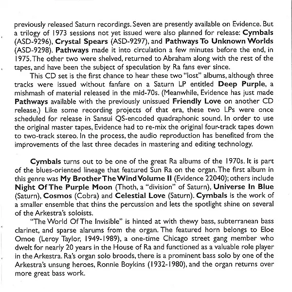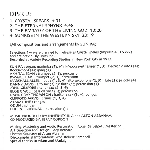 | Cím | The Great Lost Sun Ra Albums (Cymbals & Crystal Spears) |