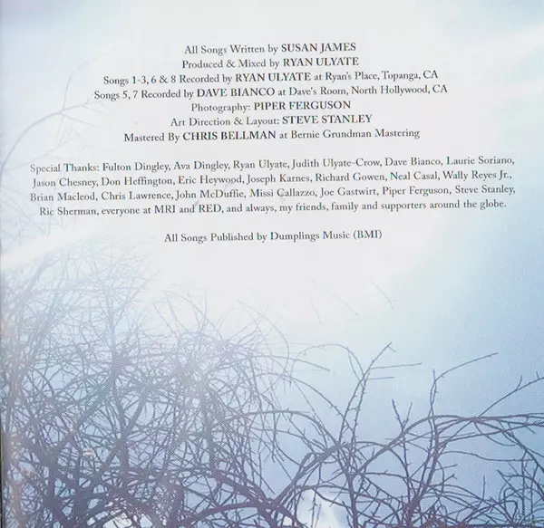 Acoustic Guitar, Dobro John McDuffie | Bass Jason Chesney | Drums Don Heffington | Guitar [Harmonic Guitar], Electric Guitar Ryan Ulyate | Pedal Steel Guitar Chris Lawrence (4) | Vocals, Backing Vocals, Acoustic Guitar, Mandolin Susan James