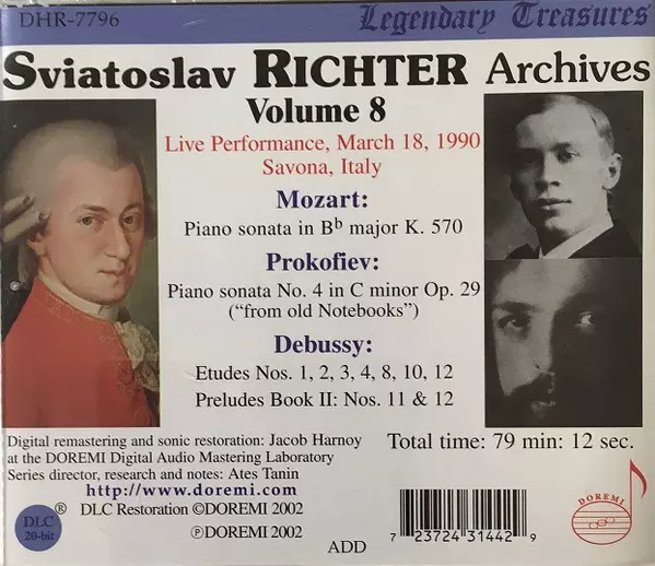| Művész | Wolfgang Amadeus Mozart | Claude Debussy | Sviatoslav Richter | Sergei Prokofiev |