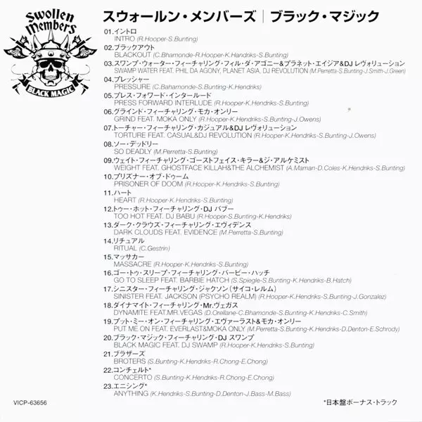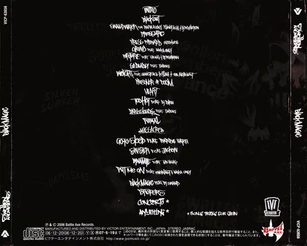 Swollen Members: Black Magic A lemezen lévő változat CD - standard kiadás. Ez a különleges kiadás - Japán a kiadó által Battle Axe Records napján jelent meg 2007. Album műfajba sorolható Hip Hop.
