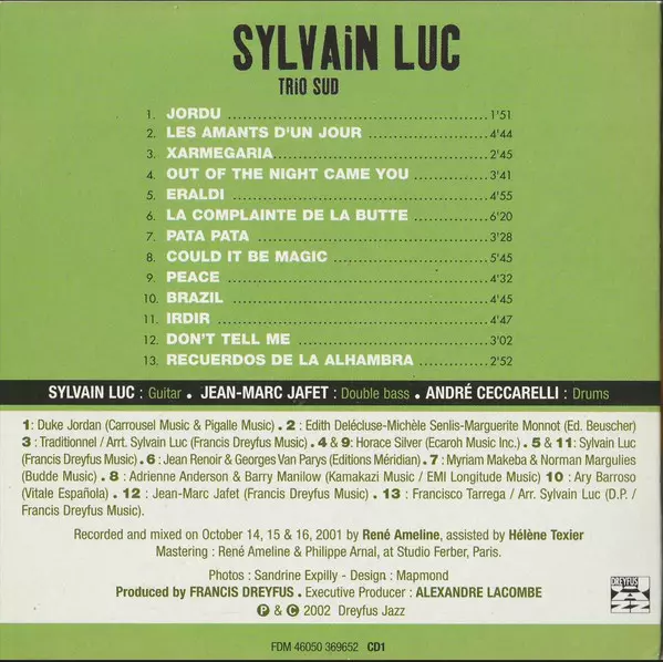 Sylvain Luc: 3 Original Album Classics A lemezen lévő változat 3CD/Dobozkészlet - standard kiadás. Ez a különleges kiadás - Franciaország a kiadó által Dreyfus Jazz év 25. március 2010. Album műfajba sorolható Jazz. Trio Sud Joko & Ambre.