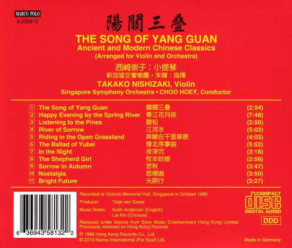 CD Takako Nishizaki: The Song Of Yang Guan - Ancient And Modern Chinese Classics