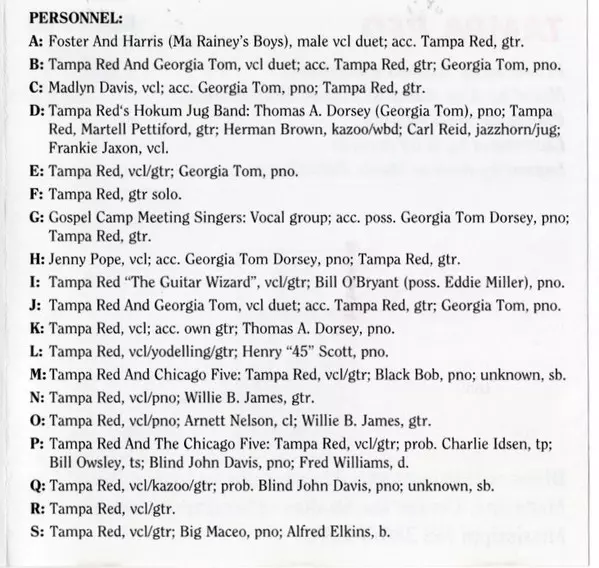 | Vocals, Guitar Tampa Red | Vocals, Piano Georgia Tom | |||