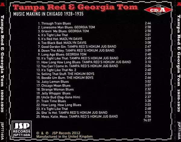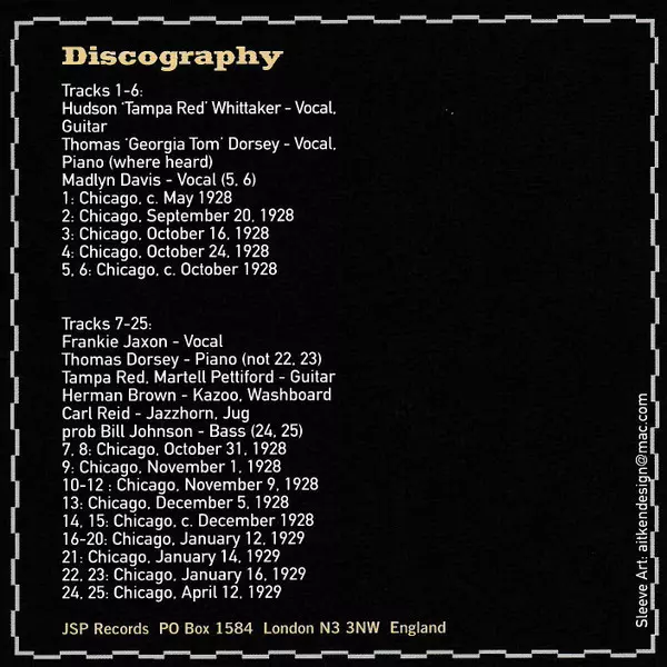 | Guitar Tampa Red | Jug Carl Reid | Piano Georgia Tom | Vocals Frankie Jaxon | Washboard, Kazoo Herman Brown | |||
