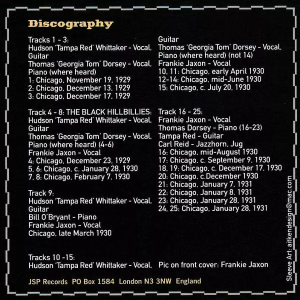 | Guitar Tampa Red | Piano, Vocals Georgia Tom | Vocals Frankie Jaxon | |||