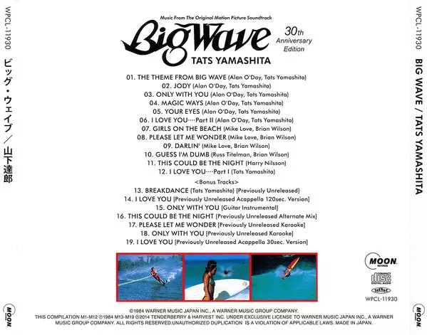 Tatsuro Yamashita: Big Wave (30th Anniversary Edition) A lemezen lévő változat CD - felújított kiadás. Ez a különleges kiadás - Japán a kiadó által Moon Records (5) év 30. július 2014. Album műfajok között Rock, Pop, Színpad és képernyő, Funk / Soul, Pop Rock, Soundtrack, Soul, Funk, Surf és City Pop.