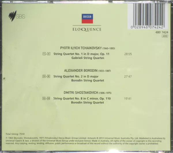 | Művész | Pyotr Ilyich Tchaikovsky | Dmitri Shostakovich | Borodin String Quartet | Alexander Borodin | The Gabrieli String Quartet |