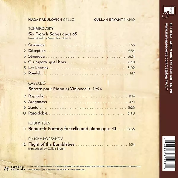 | Művész | Pyotr Ilyich Tchaikovsky | Nikolai Rimsky-Korsakov | Gaspar Cassadó | Cullan Bryant | Antin Rudnytsky | Nada Radulovich |