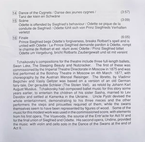 | Cím | Swan Lake (Complete Ballet) |