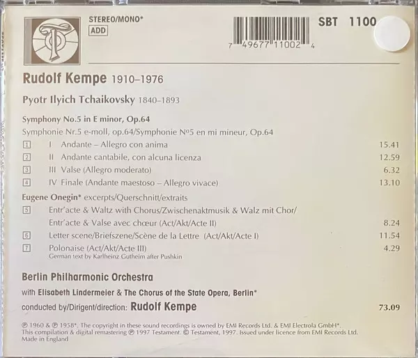 | Művész | Pyotr Ilyich Tchaikovsky | Berliner Philharmoniker | Rudolf Kempe |