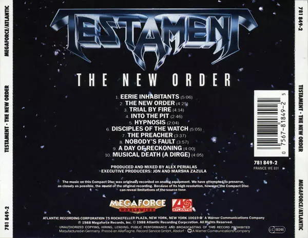 Az 1988-as Testament: The New Order című album egy 1988. október 10-én megjelent thrash metal album. Az album producere Andy Sneap volt, és a zenekar negyedik stúdióalbuma. Az albumot a Morrisound Recording stúdióban vették fel a floridai Tampában. Az album volt a zenekar első olyan albuma, amelyen Chuck Billy énekelt, és a zenekar utolsó olyan ...
