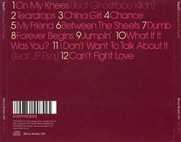 The 411: Between The Sheets A lemezen lévő változat CD - standard kiadás. Ez a különleges kiadás - Európa és az Egyesült Királyság a kiadó által Sony Music UK év 15. március 2005. Album műfajok között Pop, Funk / Soul, Hip Hop és Contemporary R&B.