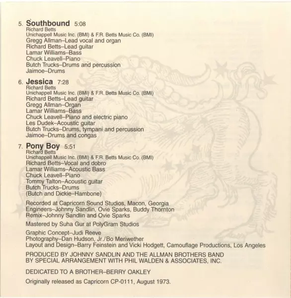 | További információk | 1997 Remaster Enhanced — Capricorn (Europe) |