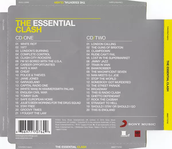 The Clash: The Essential Clash A lemezen lévő változat 2CD - standard kiadás. Ez a különleges kiadás - Európa a kiadó által Columbia a következőkkel együttműködve Legacy és Sony Music év 5. október 2010.