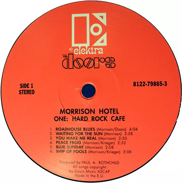 The Doors : Morrison Hotel is the fifth studio album by the Doors, released on January 5, 1970. The album was recorded in early 1969, after the band had returned from a long tour of Europe. The album reached number four on the Billboard 200 chart and was certified platinum by the Recording Industry Association of America. The album's title is de...