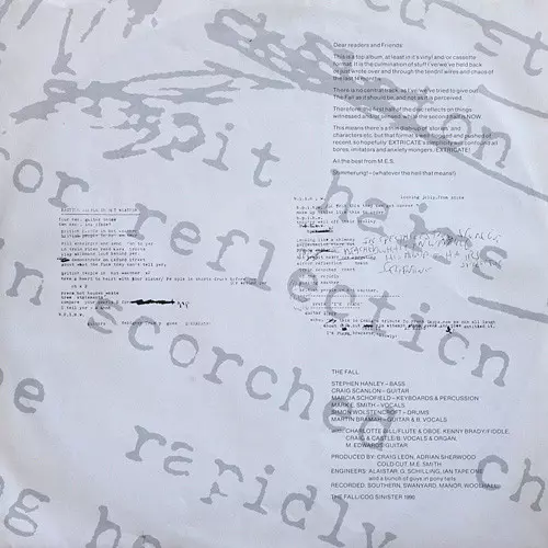 The Fall 1990's Extricate is a post-punk masterpiece. Featuring gritty guitars and Mark E. Smith's distinctive vocals, the album is a perfect example of the band's sound. Highlights include the catchy "Telephone Thing" and the dark "My New House".