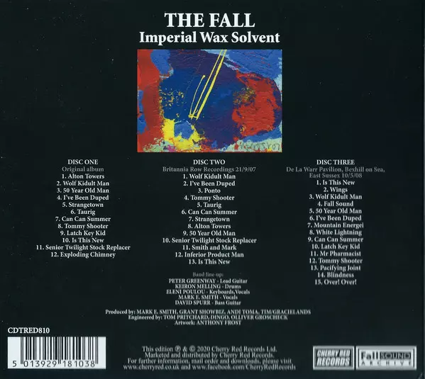 The Fall: Imperial Wax Solvent A lemezen lévő változat 3CD - felújított kiadás. Ez a különleges kiadás - UK a kiadó által Cherry Red év 17. április 2026. Album műfajok között Rock, Alternative rock és Punk.