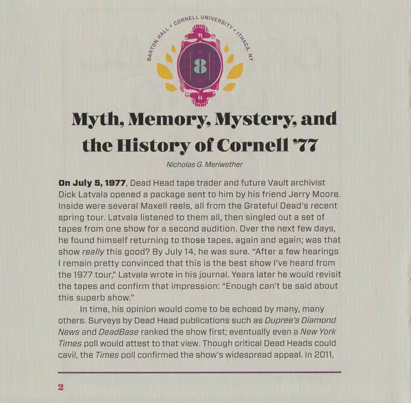 Finally: a live album after 40 years Probably the most legendary Grateful Dead concert finally got its first official release in 2017. "Cornell 5/8/77" is a recording of their May 8, 1977 concert. Jerry Garcia, Donna Jean Godchaux, Keith Godchaux, Mickey Hart, Bill Kreutzmann, Phil Lesh and Bob Weir played Barton Hall on the campus of Cornell Un...