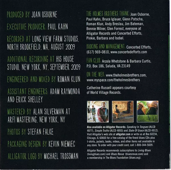 The Holmes Brothers: Feed My Soul A lemezen lévő változat CD - standard kiadás. Ez a különleges kiadás - USA a kiadó által Alligator Records év 2. március 2010. Album műfajok között Blues, Funk / Soul, Rhythm & Blues, Soul, Country-Blues, Gospel és Modern Electric Blues.