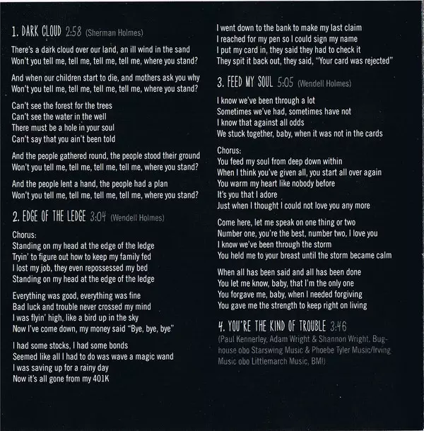 Backing Vocals Catherine Russell, Glenn Patscha, Joan Osborne | Electric Organ [Hammond B-3] Glenn Patscha | Electric Piano [Wurlitzer] Glenn Patscha | Lead Vocals Wendell Holmes (2) | Percussion Joan Osborne | Written-By Adam Wright (6), Paul Kennerley, Shannon Wright (2)