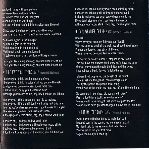 Backing Vocals Joan Osborne | Guitar Matt Munisteri | Keyboards Glenn Patscha | Lead Vocals Wendell Holmes (2) | Percussion Joan Osborne | Written-By Wendell Holmes (2)