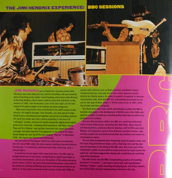 The Jimi Hendrix Experience: BBC Sessions LTD A lemezen lévő változat bakelitlemez 3LP - korlátozott példányszámban kiadás. Ez a különleges kiadás - USA a kiadó által Experience Hendrix a következőkkel együttműködve Legacy év 16. november 2010.