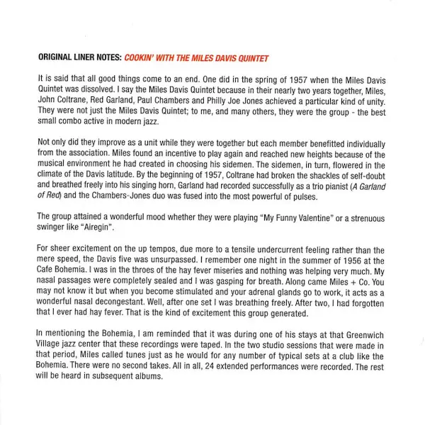| Cím | Cookin' With The Miles Davis Quintet |