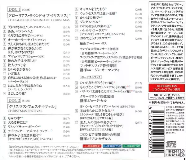 | Művész | The Philadelphia Orchestra | Eugene Ormandy | The Temple University Choirs | St. Francis De Sales Boychoir |