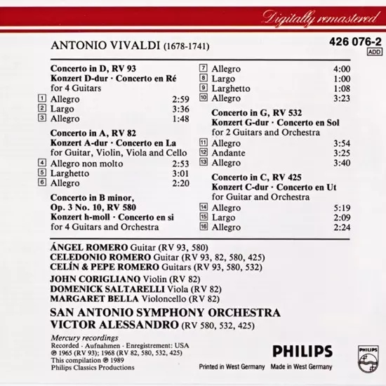 | Művész | Antonio Vivaldi | The Romeros | Victor Alessandro | San Antonio Symphony Orchestra |