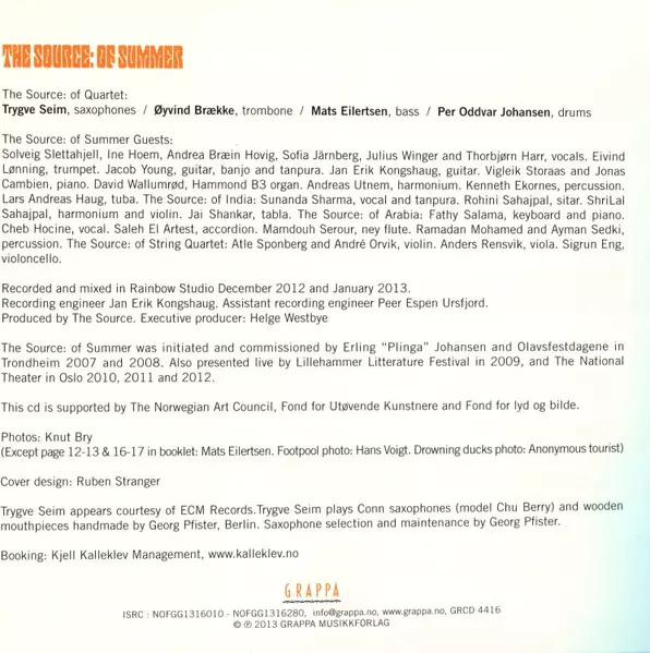 The Source: The Source Of Summer A lemezen lévő változat 2CD - standard kiadás. Ez a különleges kiadás - Norvégia a kiadó által Grappa év 9. szeptember 2014. Album műfajok között Jazz és Contemporary Jazz.
