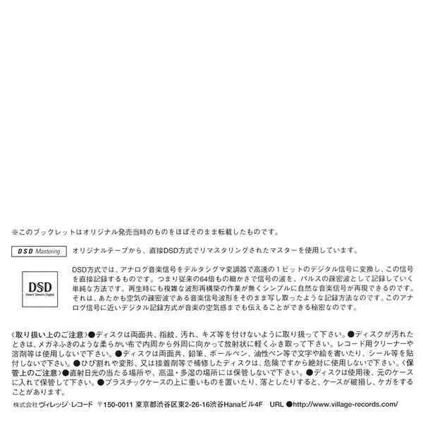 | További információk | Japan DSD Remaster (Village Records) |